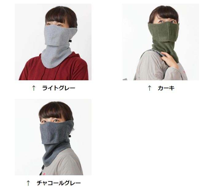 ◎耳ひもを外して上部(マスク部)を中に折り込めば、ネックウォーマーとしても着用できます。