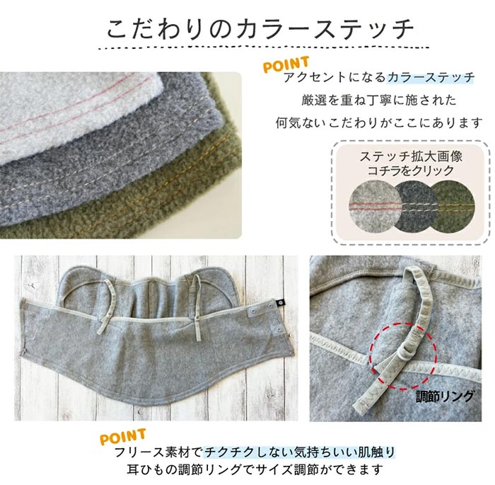 ◎肌触りの良いフリース生地なので着けた瞬間から暖かい