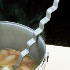 ハンドル特長1:ウェ~ブ形状で握りやすく、鍋のフチからのズレ落ちも防止。