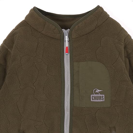 ブービーバードのシルエットのキルティングを施したフリースジャケット。キュートなブービーバードのデザインを全面に感じられるCHUMSらしい一枚。毛足が短いので着膨れせずに着用でき、アウターとしても、ミドルレイヤーとしても活躍してくれます。