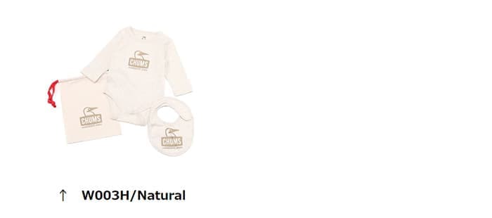 出産祝いの贈り物にピッタリ、CHUMSらしいキュートな〈長袖ロンパース〉〈スタイ〉〈巾着袋〉の3点セット
