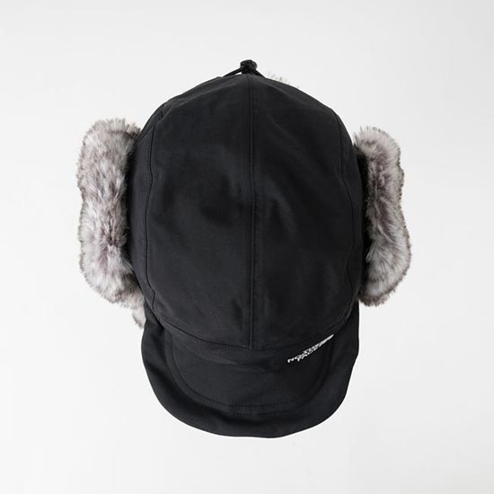 エクスペディション用の防寒ギアをモデルにした、寒冷地用のキャップ。表地には防水透湿性に優れたリサイクルナイロンオックス生地を採用。耳当て部分のリサイクルポリエステルのファーは、リアルファーのような色合いと肌触り。毛足が長く、デッドエアをため込み保温性を高めています。縫い目はシームシーリング加工済み。耳当てはテープバックルで頭部に巻き上げることも可能。UVプロテクト(UPF50+、紫外線カット率95%以上)機能付き。ウインターキャンプから冬季登山まで、さまざまな冬のアクティビティに重宝するアイテムです。